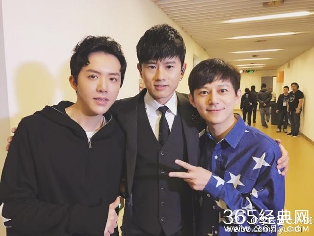 下面是三人合照,三人中何炅老师排第三是毫无悬念,李云迪是身体稍微前倾,张杰哥哥站的比较笔直。照中来看张杰比李云迪略高一些。