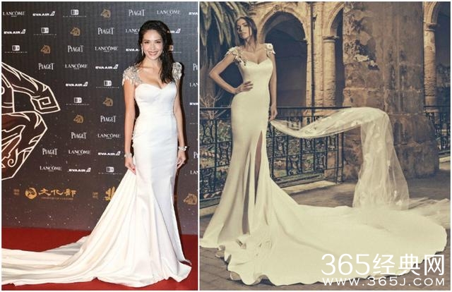 和这两位穿着婚纱品牌设计的礼服上场相比,许玮甯直接是穿着婚纱上场啊。