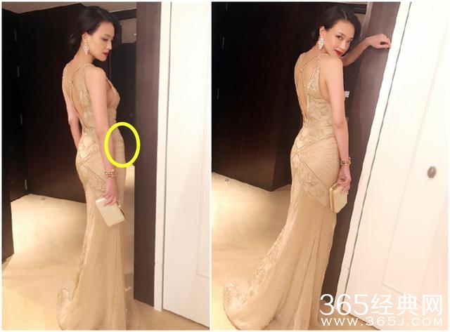 老实说,这件高定设计不太清爽,冰冰可是已经瘦了12斤诶。但这件礼服的反光面料和层层叠叠裹裹绕绕反而显壮。高开衩露出超白的腿,同时也露出了驴蹄: