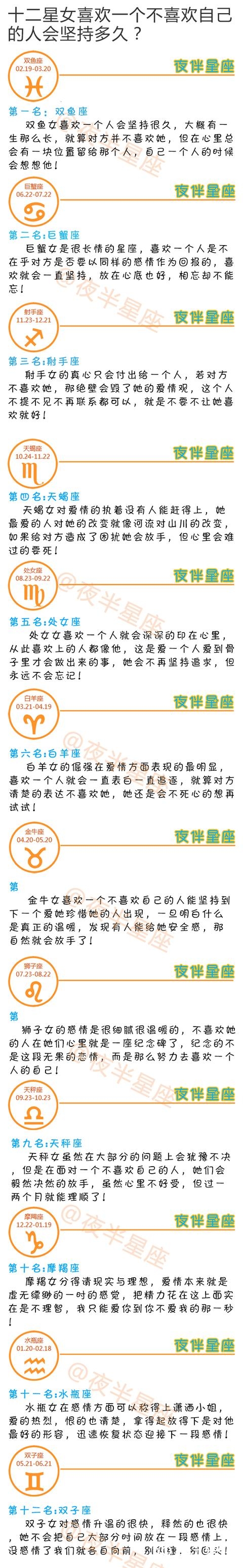 十二星座女会坚持喜欢一个不喜欢自己的人多久?