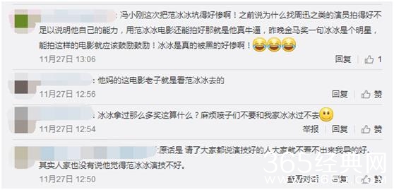 所以很多网友在听到冯小刚这样子的获奖感言,都感觉冯小刚说得太过份了。明知道范冰冰一心想摆脱“花瓶”这一称号,只是想让观众记住她是一名演员,没想到却被冯小刚一句“感谢冰冰,一个明星来演文艺片”给怼了回去。