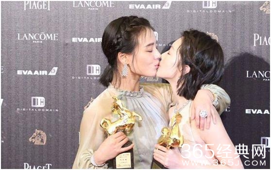 马思纯也许是因为没想到自己会得奖就激动得说不出话来,周冬雨就一直在台上“挤兑”她,不过这也是她们姐妹之间的亲密表现吧。哈哈,,,更有意思的是,周冬雨和马思纯两妹子在台下抑制不住心中的激动,就这么大大咧咧地亲上了。嘿嘿,,,小编(捂住双眼)表示没有看到这个画面。