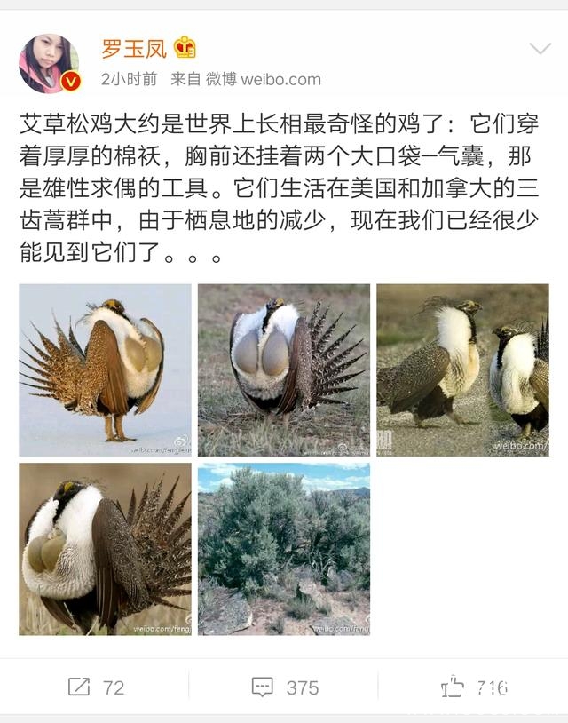 凤姐一时心血来潮,化身环保大使,为众网友介绍了一种濒临灭绝的松鸡,它叫艾草松鸡,美洲产,只是样子有点"不可描述"。