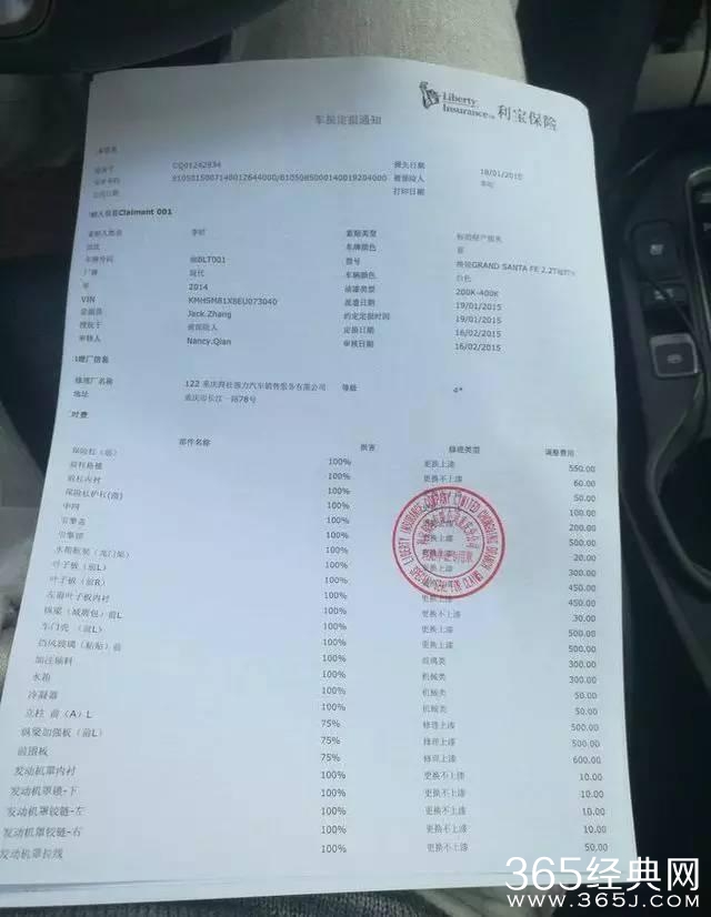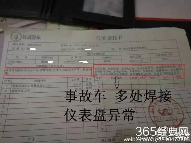 雷先生PO出了托人调出来的这辆重大事故车当初的维修单。