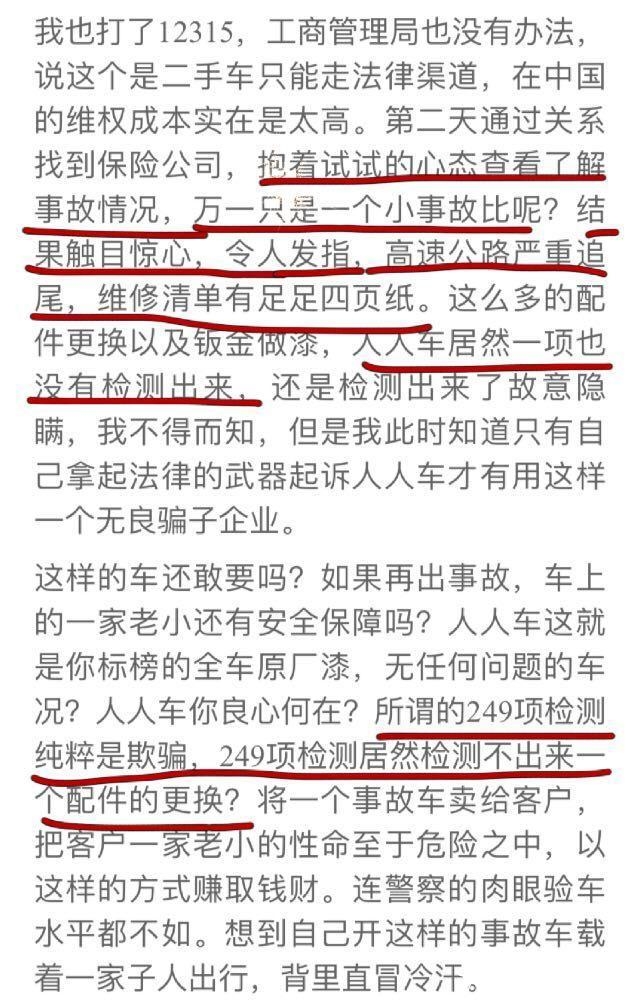 好不容易在人人车拖延推诿之后,雷先生获得赔偿了,风波也要压下去了;然而上周,又一个被“人人车”的重大事故车坑了的买家出现了。