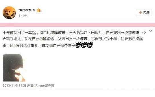 孙俪曾经发了一条微博讲述这件事,有一块玻璃渣在她的嘴角边存在了10年,想想就觉得很可怕。