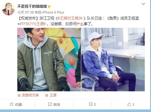 今天据网友“不是我干的嘿嘿嘿”爆料:《王牌对王牌》队长确定为王祖蓝、王源