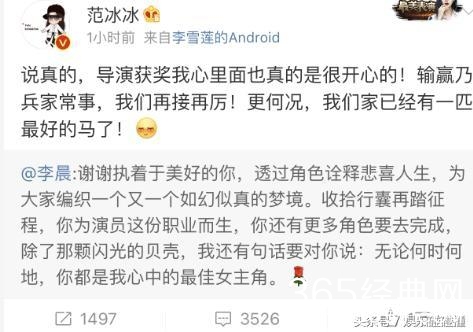 53届金马奖落幕,范冰冰遗憾乱落选影后,李晨发来微博鼓励冰冰,两个人恩爱程度让网友觉得结婚有望!
