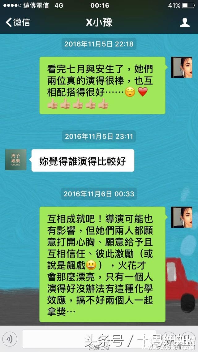 真正哭的原因是林依晨笑说:“我11月初看完《七月与安生》,我就跟经纪人讨论说她们两个一定会得双影后!因为她们两个相辅相成,没有彼此。今天感动哭了。”这就是林依晨,善良可爱。