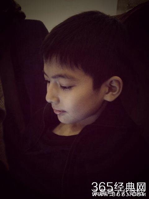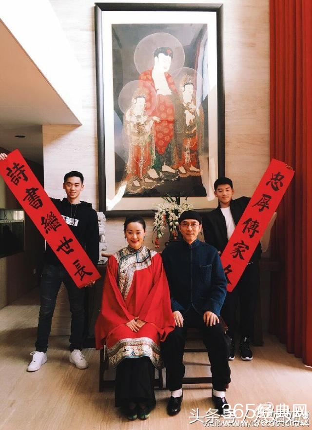 其中儿子景天一今年14岁,从小到大颜值一直在线