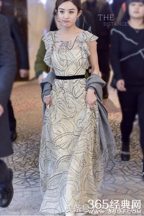 因为看了赵丽颖穿着一袭礼服,就着一双宾馆的棉拖鞋,就出来了↓