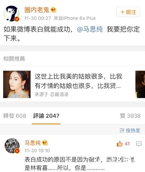 这个营销博说:如果微博表白就能成功,@马思纯 我要把你定下来。