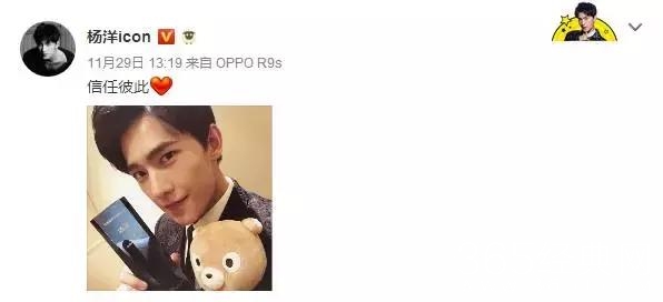 于是杨洋昨天发了一条微博晒照并称“信任彼此”