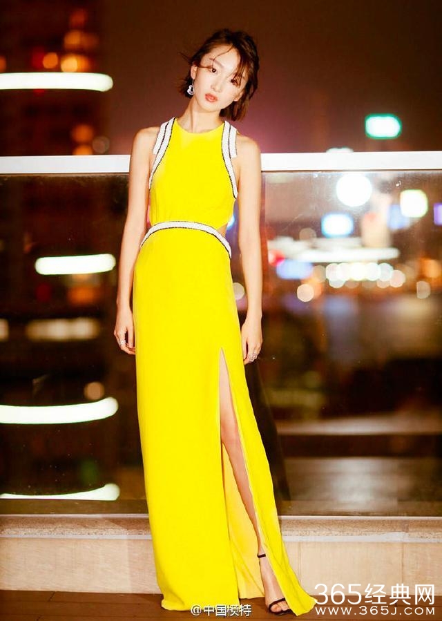 这一袭黄色长裙,虽然是高开叉,但给人的感觉不是性感是灵动。
