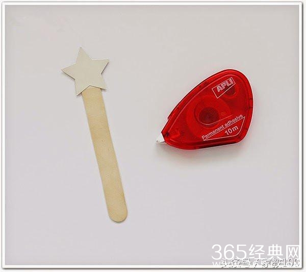 第二步:用亮卡纸剪一个五角星,并贴在冰棒棍的上端。