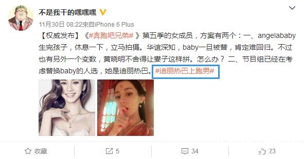 再者,近日再次传言迪丽热巴将替代baby,成为跑男一员,或者baby诞下宝宝后,回归跑男。