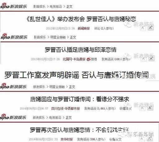 和邱泽分手,被邱泽爆出唐嫣先出轨,但是罗晋否认了插足糖糖邱泽之间的感情,然后又在多次公众场合否认和唐嫣在一起。但是几年来,两人至少合作了四部剧:从《乱世佳人》到《X女特工》,从《克拉恋人》到今年的《锦绣未央》。