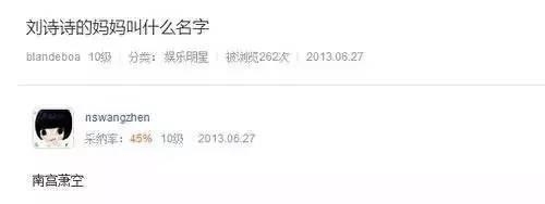 有网友爆料刘诗诗的妈妈叫作南宫萧空