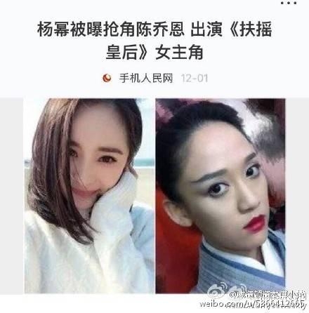 杨]近日被曝出将主演由小说《扶摇皇后》改编的同名电视剧,而这部电视剧的女主角传出原定是陈乔恩,而杨幂也被曝抢了乔恩的角色,消息一出引起网友热烈讨论。