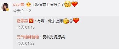 在评论中,网友纷纷说霍思燕单纯,因为有一个高仿号“papi酱”留言问“路演有上海吗?”霍思燕还特意回复了,“有啊,他去上海。”现在微博大V的标识已经和过去不同了,是红色的,而这个papi酱还是过去的大V标识,网友一眼就认出是假的了。