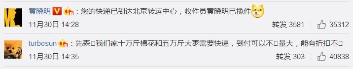 而娘娘则是给予 了物质支持,不仅说家里有各种棉花红枣需要快递,还问量大有没有折扣。。真是贤妻良母!
