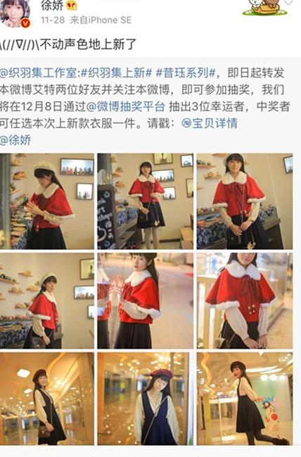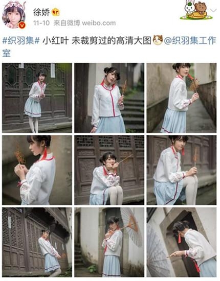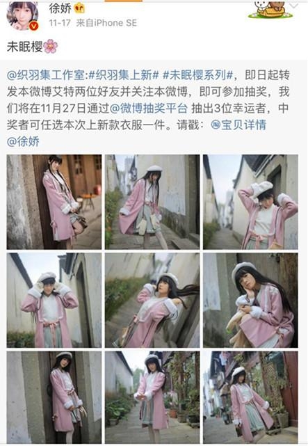 最近小编发现徐娇经常在微博宣传她的网店,况且还不止两家呢,一家叫“织羽集”专卖汉服,另一家叫“娇糖小屋”卖文具用品。
