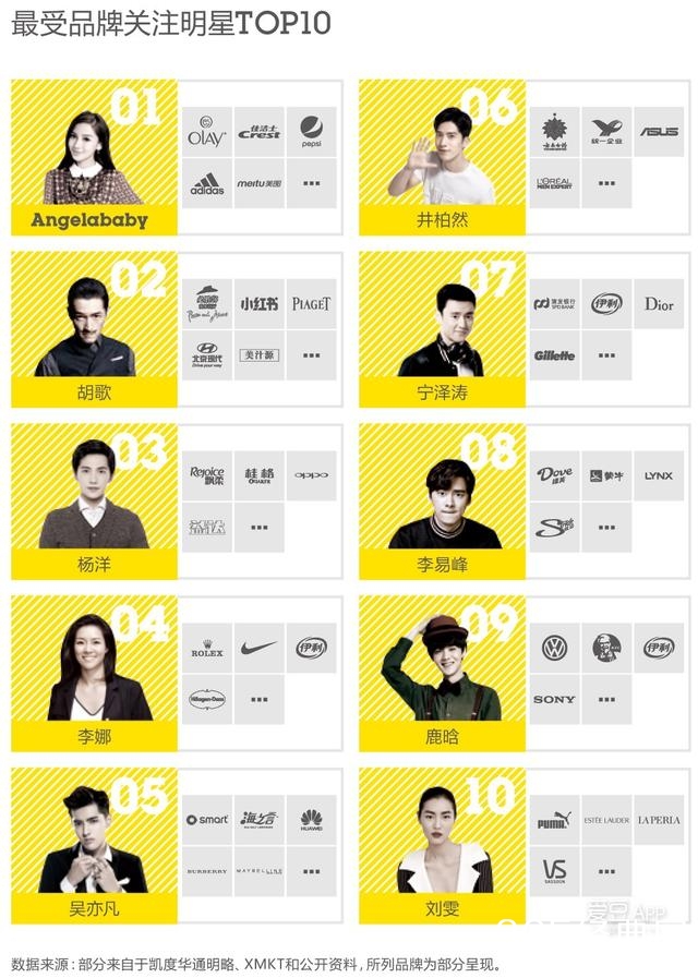 同时在最受品牌关注的明星榜中,鹿晗在闭关拍戏半年的情况下依然进入TOP9。
