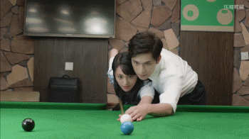 郑爽在《微微一笑很倾城》里也曾有打台球的场景。还是第一次到台球厅,完全不会打。