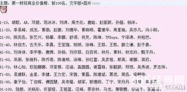 《第一财经周刊》评选出100位具有商业价值的明星。胡歌90分问鼎榜单第一名。