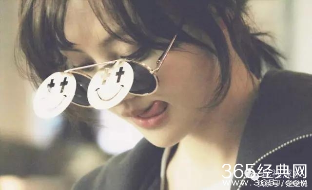 戴着一副十分个性的眼睛,还不忘翘起舌头搞怪一下。