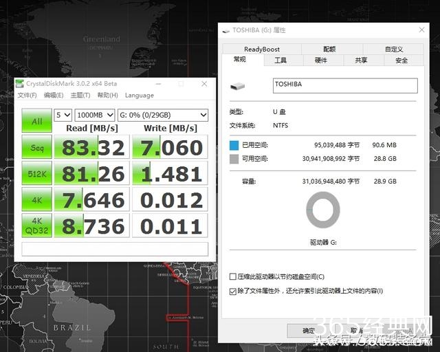 老实说,造型还是不错的,我喜欢的简约小巧型,下面用Crystal Disk Mark测试一下速度,首先是NTFS格式下的速度,windows10平台测试,和之前的Sandisk的U盘测试是同一机器Thinkpad X230.