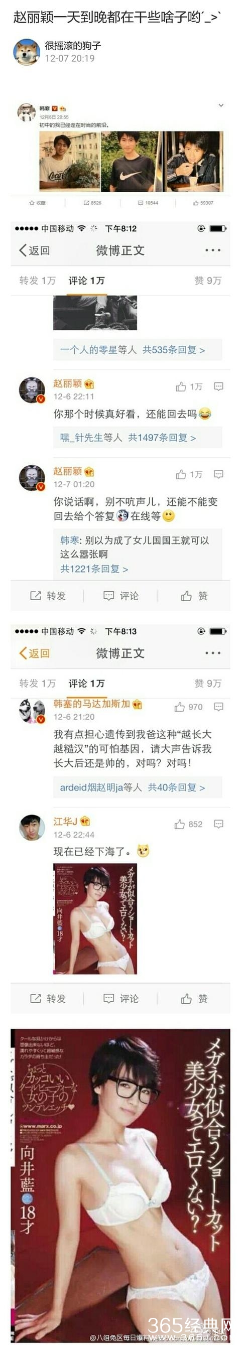 大半夜光顾韩寒的微博: