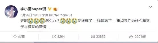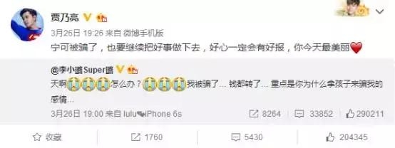 此则骗捐事件因为李小璐的参与而备受瞩目,当2016年3月李小璐在微博上曝出自己被骗后,并没有博得网友们的同情与理解,反而是在评论中是一片喊骂声: