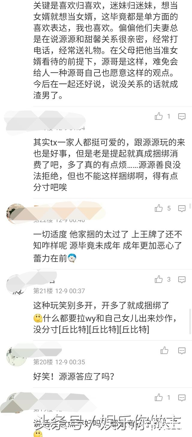 小朋友之间关系好,都是可以理解的,只是没必要一直强调想让小源当女婿啦。父母还是最好不要乱插手孩子们的感情问题,不是吗?