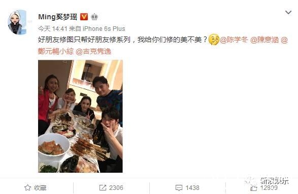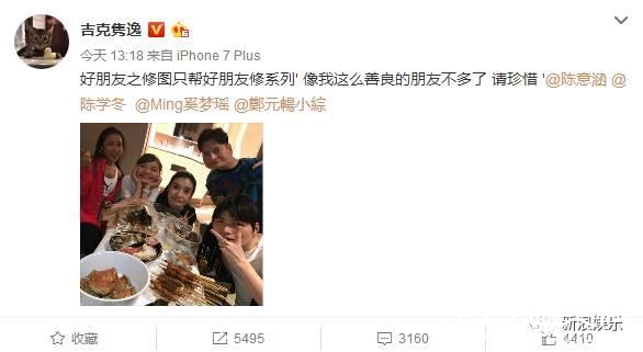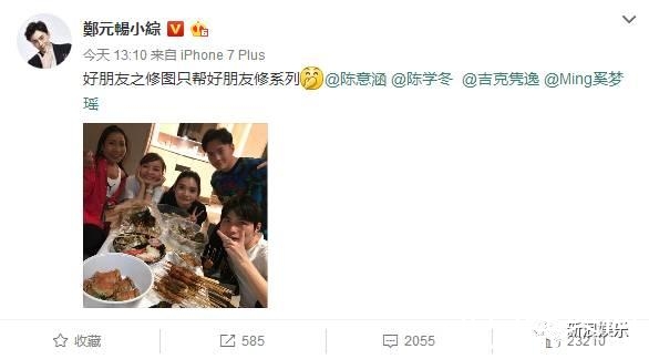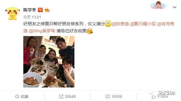 首先是陈学冬发出了一张他和陈意涵、奚梦瑶、郑元畅以及吉克隽逸的大合照。