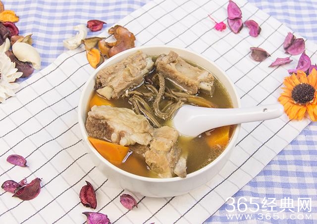 7、一碗滋补鲜香的茶树菇排骨汤就可以出锅了。
