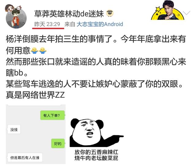 杨洋粉丝却称,杨洋倒模是去年的事情了(并没有否认事件,只是否认不是现在),今年拿出来是何用意?并还晒出了有人雇水军的微信聊天截图。