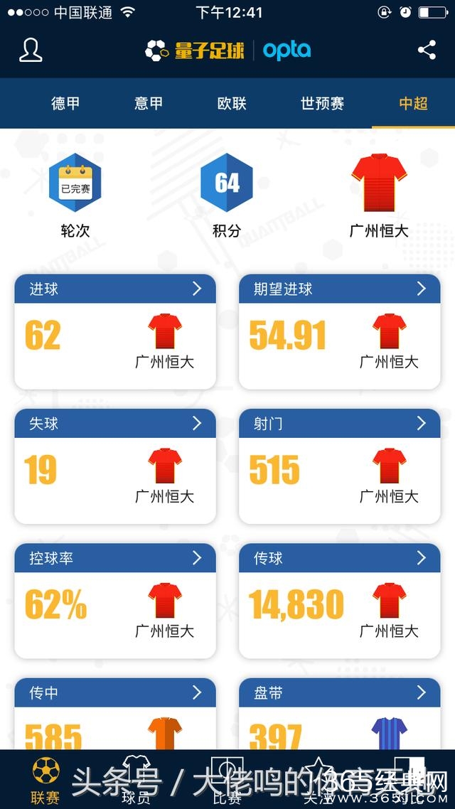 可以看到,本赛季的联赛恒大还是交出了一份比较完美的答卷:进球、期望进球、射门、控球率、传球、角球、制造机会都是中超第1,失球数最少,传中第2,抢断第3,最终提前2轮夺冠,这些数据证明恒大还是保持着对联赛的统治!