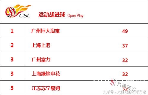 在运动战进球排行榜上,恒大以49粒入球居首。运动战进球在总进球数中的占比达到79%,也是中超排名第一,这证明恒大的进攻更加偏向注重整体。