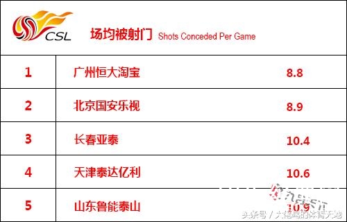 一支球队的防守好不好,最直接的体现就是被射门次数,场均被射门次数越少意味着球队的失球数也会越少,在这项数据统计中恒大占据榜首!