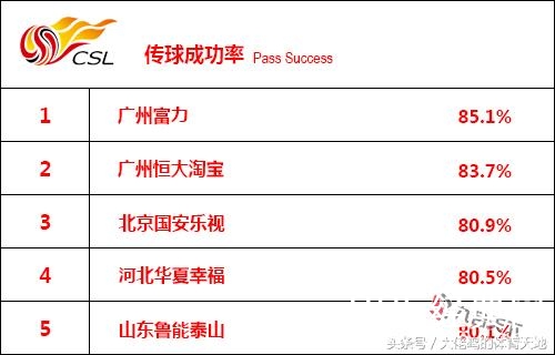 传球成功率能够有效地反映出球队比赛的流畅性,本赛季恒大的传球成功率达到83.7%,仅落后榜首的富力1.4%。