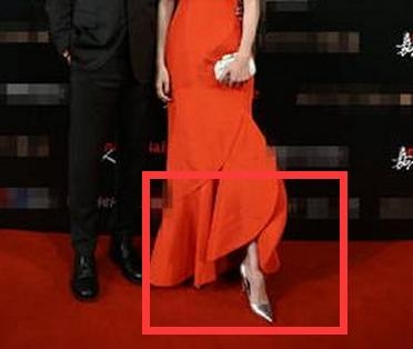 而且不知道大家有注意到没有,唐嫣拍照时有个小小的举动,把一只脚向前伸了出来,一是因为红色裙子的下摆荷叶状刚好可以展示美脚美鞋,还有一个就是这样可以显着矮一点,衬托罗晋更加的高大,涨了罗晋的面子。