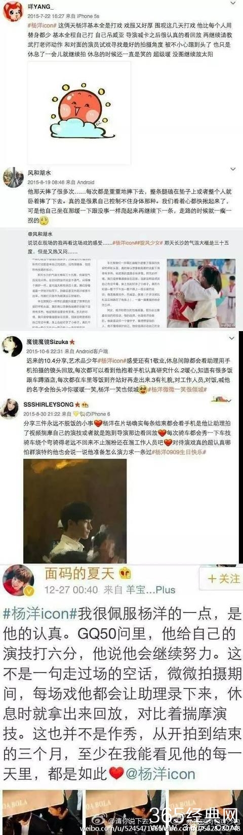 然后吊威亚什么的也都是杨洋亲自上阵,而且在片场永远都是腰板挺得最直的那一个。
