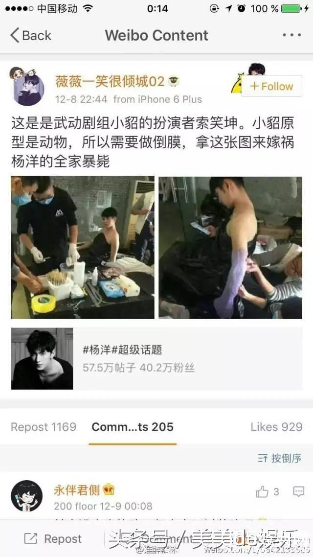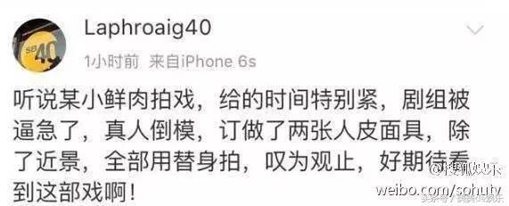 所以用倒模做替身也只能是选景或背影什么的,但是这样的替身真人也可以的。然后粉丝们还po出了很多杨洋敬业的证据,据说拍旋风少女时每次打斗摔倒都是真摔。