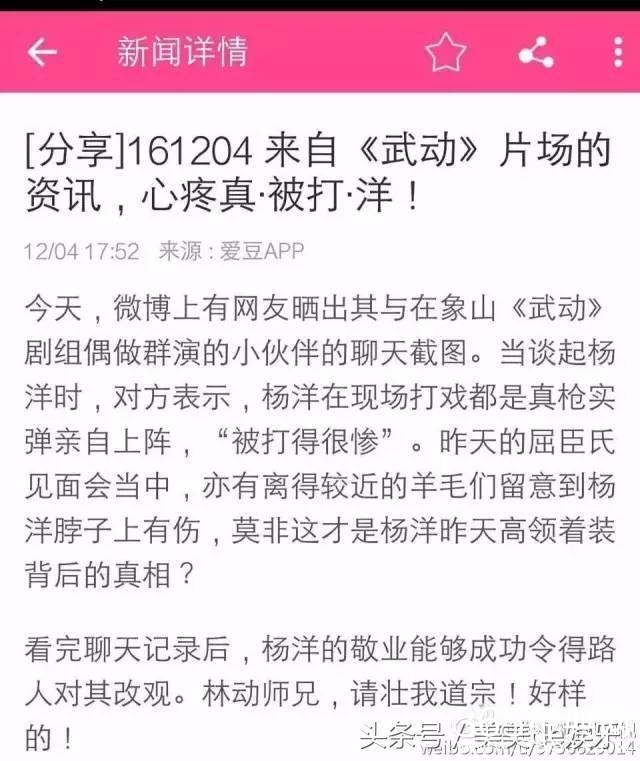 而且杨洋在拍武动乾坤时每一场打戏都是亲自上阵的,据现场的小伙伴描述情景,表示自己看着都心疼。