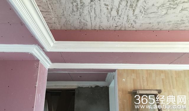装修吊顶,难免用很多的石膏线,很多风格是需要石膏线来衬托的,比如美式,欧式等,当然现代风格也可以用石膏线,来看看石膏板吊顶需要做石膏线条的收口,石膏板下口是平整的整张石膏板,侧面的石膏线条就是一根杉木龙骨