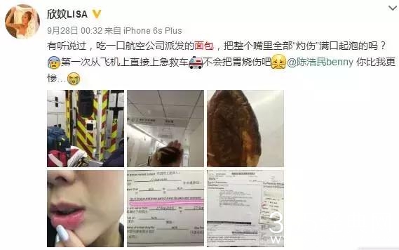 记得之前陈浩民夫妇俩吃个飞机餐被烫送急诊,还专门发条微博吐槽航空公司的飞机餐: