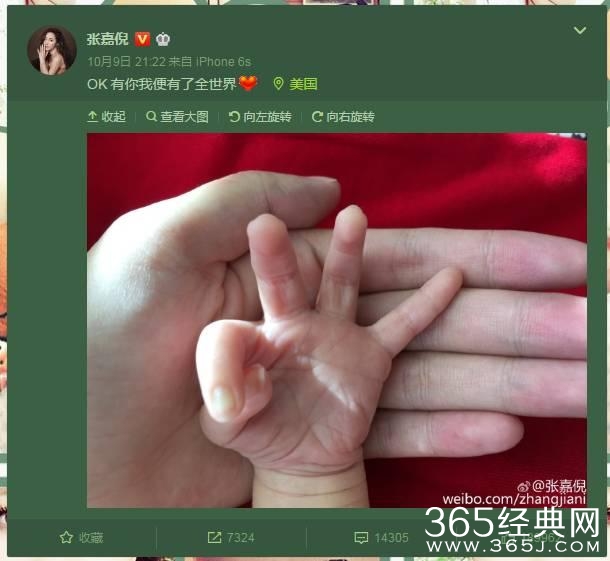 今年10月,张嘉倪突然在微博晒出自己的和宝宝的合照!宣布生子!