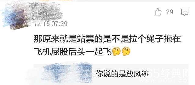 哈哈,“可怜的”沈南,平时在节目中被金姐“欺负”也就算了,咋坐个飞机还要受到如此的“待遇”,“若真买个经济舱给降成站票,那原来就是站票的是不是拉个绳子拖在飞机屁股后头一起飞”,“大哥,你说的是放风筝”,网友们也是想的够远的,飞机还能来个站票,您以为是坐火车呢