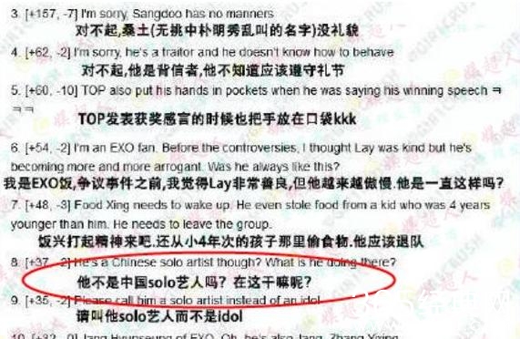虽然说张艺兴在中国礼貌出了名,但是在韩国就不一样了,因为在某次颁奖典礼上感谢致辞时用中文讲,被韩国网友疯狂吐槽,直言,滚出韩国这样难听的字眼!因为手插口袋这张照片,被骂不懂礼节,其实当晚90度鞠躬张艺兴根本没停过!